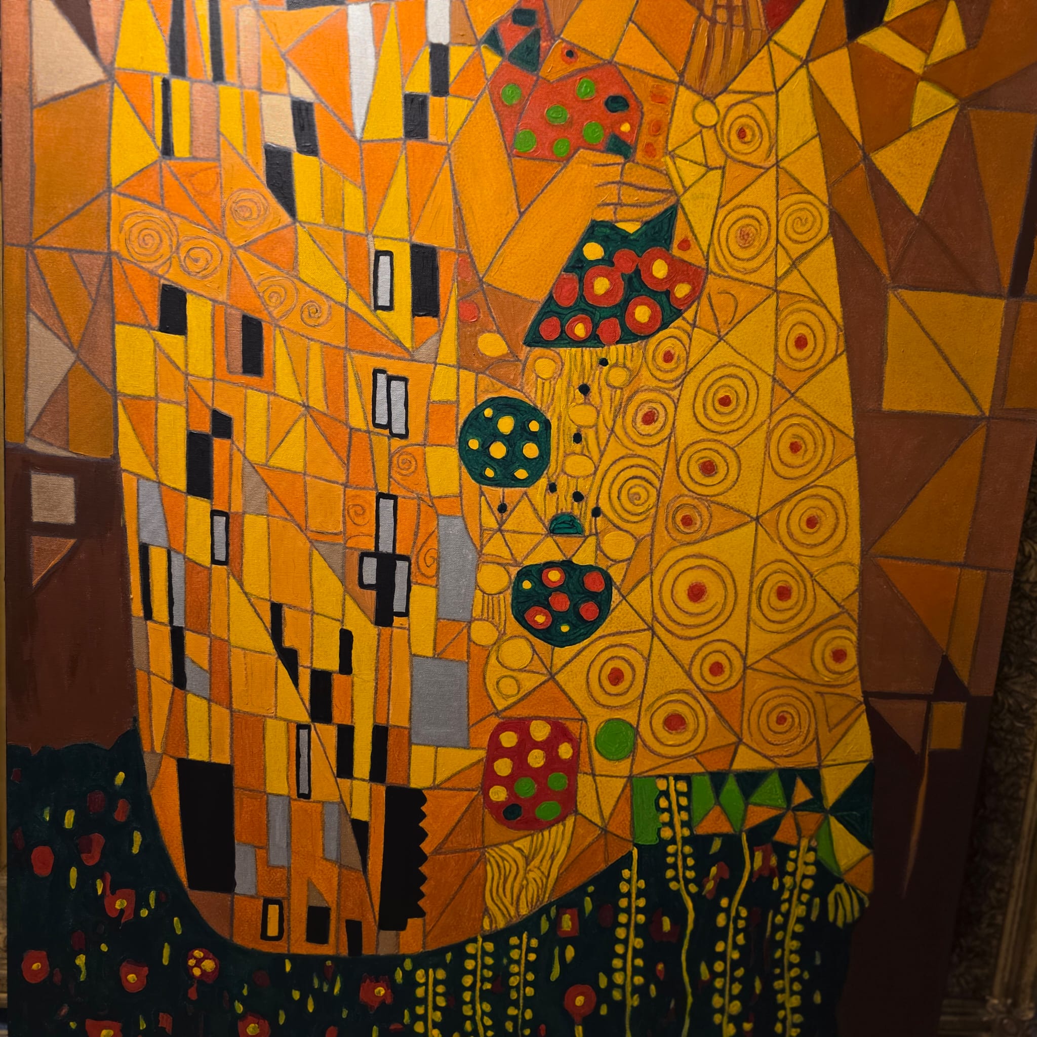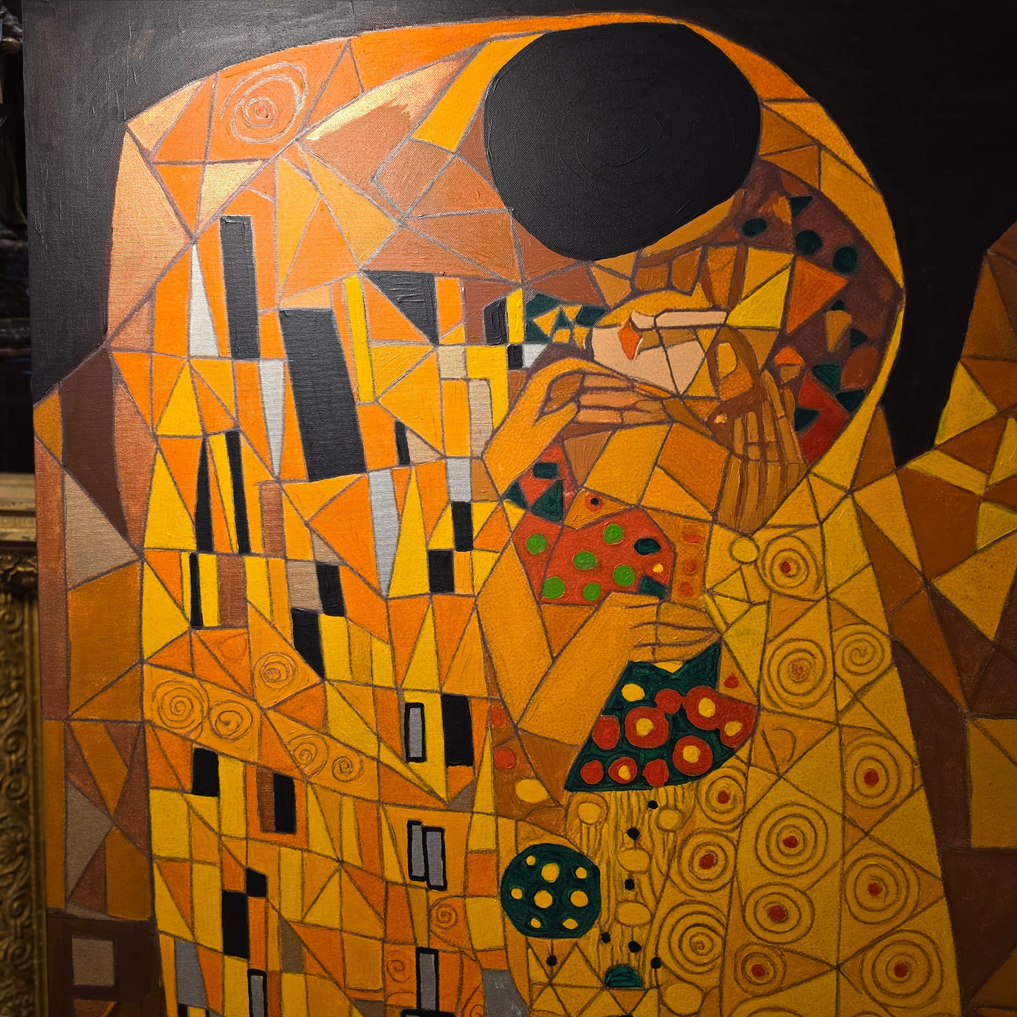As the author, I embrace the risk of reinterpretation: I don’t quote—I transfigure. I want the luminous surface to carry emotional density, for ornament to think, for pattern to breathe. And as an antiquarian, I like this piece to converse with memory—ours and art history’s—while claiming the present. Whoever comes to see it will understand: here, the kiss isn’t a scene; it’s a state. 💫👄